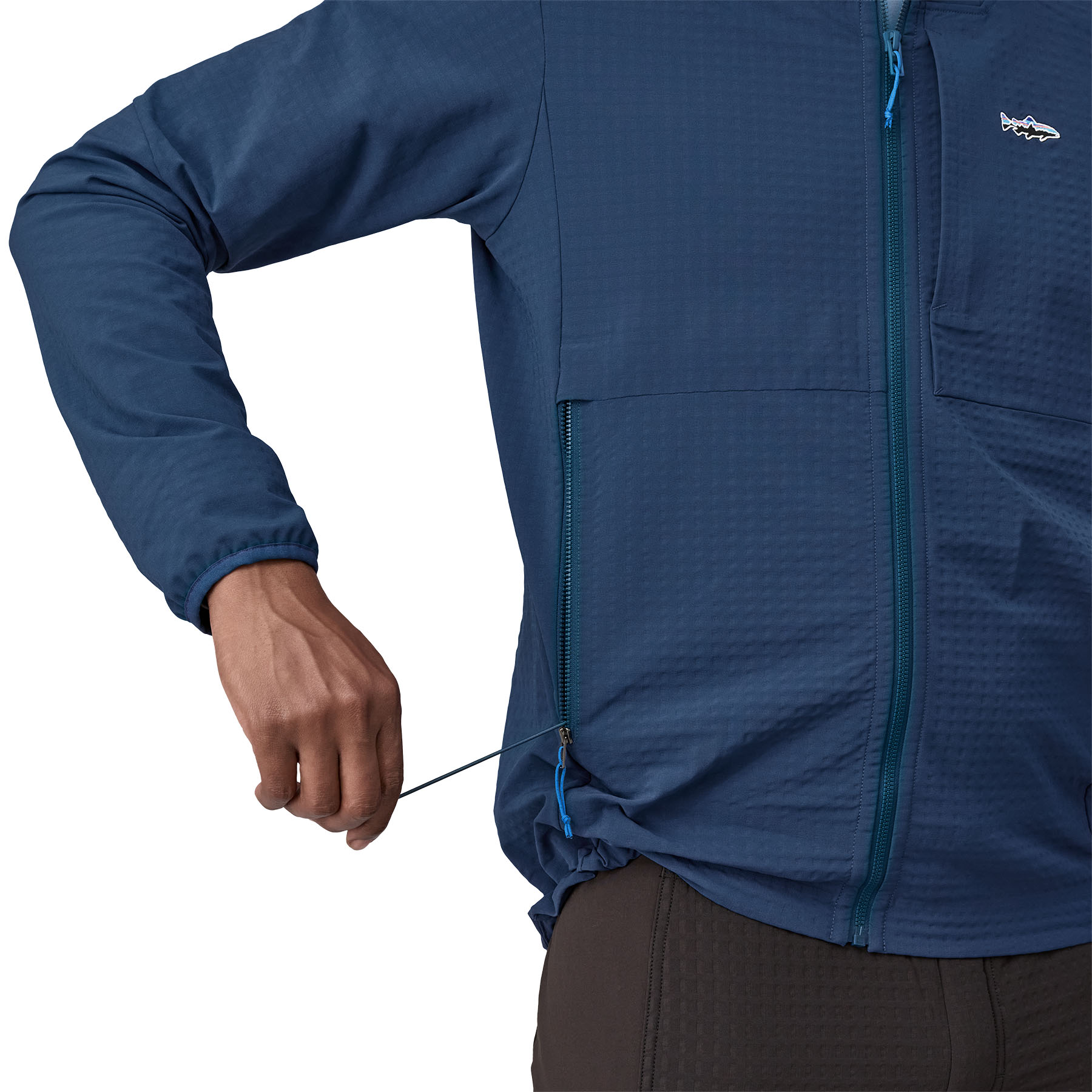 Two zippered handwarmer pockets are positioned high for hip pack, wading belt and backpack compatibility; an external, zippered chest pocket provides secure storage